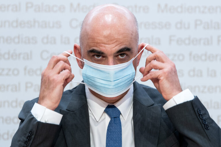 Bundesrat Alain Berset spricht an einer Medienkonferenz ueber Covid 19 Massnahmen, am Mittwoch, 19
