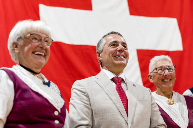 Bundesrat Ignazio Cassis posiert fuer Erinnerungsbilder mit der Bevoelkerung anlaesslich der Bundesfeier am Freitag, 1