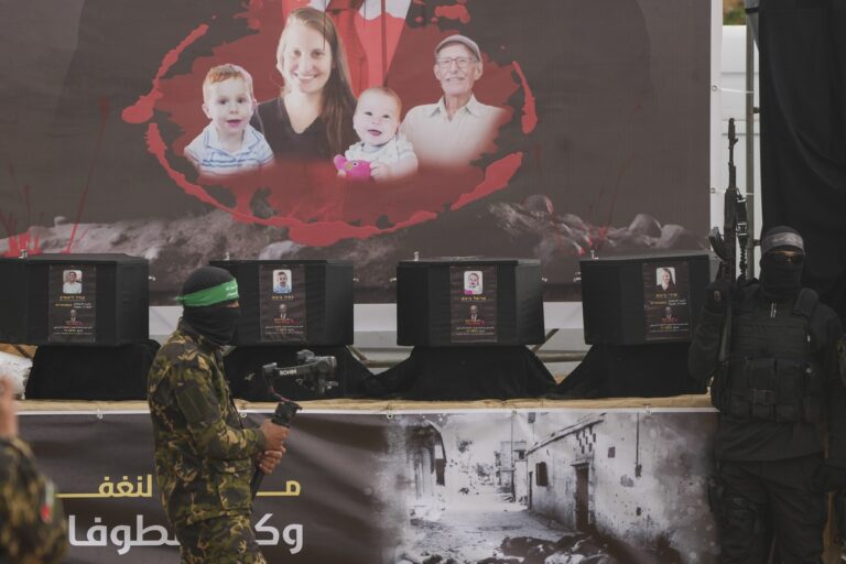 «Wir hätten es lieber gesehen, wenn eure Söhne lebendig zu euch zurückgekehrt wären, aber eure Armee- und Regierungsführer haben sich entschieden, sie zu töten, anstatt sie zurückzubringen», so die Verlautbarung der Hamas bei der Übergabe der toten Gefangenen, die sie aus ihren Häusern in Israel entführt hatte.