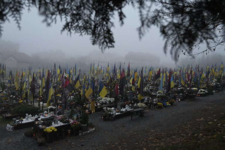 Graves of Ukrainian soldiers who died since Russia launched its full-scale invasion are seen at Lychakiv cemetery in Lviv, Ukraine, Monday Nov