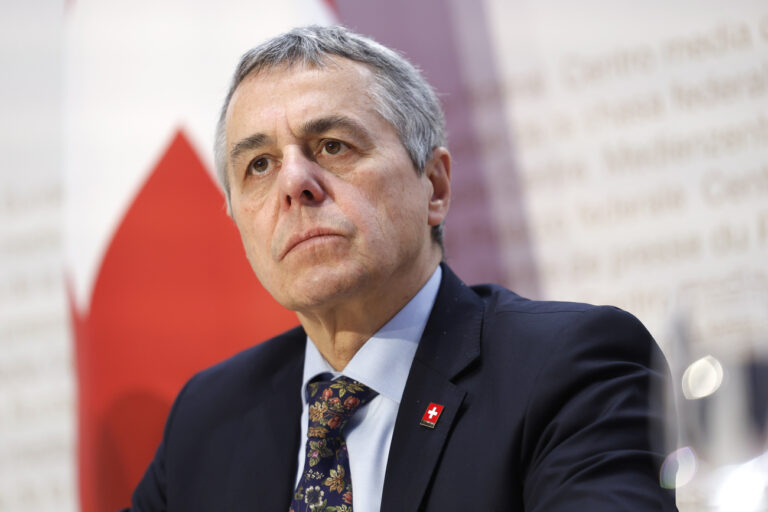 Bundesrat Ignazio Cassis waehrend einer Medienkonferenz zu den Massnahmen zur Unterstuetzung des "Gaza Peace Plan" der Vereinigten Staaten, am Mittwoch, 26