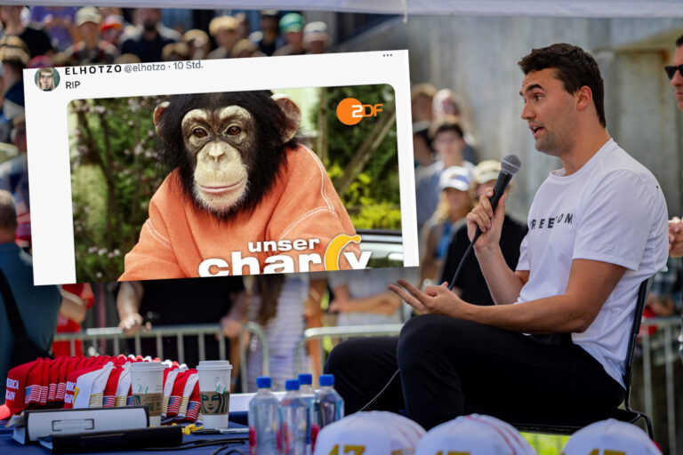 Der Blogger El Hotzo (bürgerlich Sebastian Hotz), bekannt durch das Umfeld von Jan Böhmermann, veröffentlichte ein Bild eines Schimpansen aus der Serie «Unser Charly» mit dem Kommentar «RIP» – ein Beitrag, der vielfach als abwertende Anspielung auf Kirk verstanden wurde.