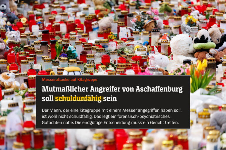 Der 28-jährige Afghane, der am 22. Januar in Aschaffenburg eine Kitagruppe mit einem Messer attackiert und dabei zwei Personen getötet haben soll, soll nach Einschätzung von Experten schuldunfähig sein. Dies geht aus einem forensisch-psychiatrischen Gutachten hervor, das der Staatsanwaltschaft Aschaffenburg vorliegt.