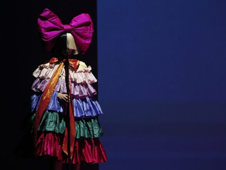epa05529256 Australian singer Sia performs at the end of the Apple launch event at the Bill Graham Civic Auditorium in San Francisco, California, USA, 07 September 2016