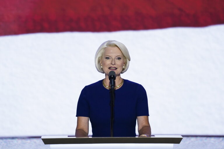 epa11484396 Callista Gingrich, former Ambassador to the Holy See and wife of former House Speaker Newt Gingrich, delivers remarks during the third day of the Republican National Convention (RNC) at Fiserv Forum in Milwaukee, Wisconsin, USA, 17 July 2024. The convention comes days after a 20-year-old Pennsylvania man attempted to assassinate former president and current Republican presidential nominee Donald J. Trump. The 2024 Republican National Convention is being held 15 to 18 July 2024 in which delegates of the United StatesâÄ™ SHAWN THEW / KEYSTONE