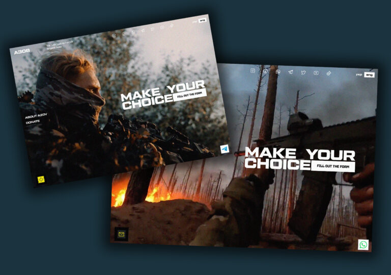 Screenshots der Webseite der Einheit Asow: Mit dem Slogan «Make your choice» werden Interessenten direkt zu einem Formular geführt, um sich freiwillig für den Kriegseinsatz zu registrieren.