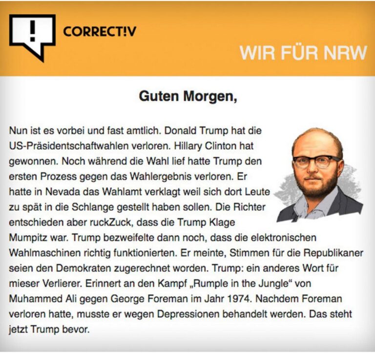 «Hillary Clinton hat gewonnen»: Correctiv-Gründer Schraven, November 2016.