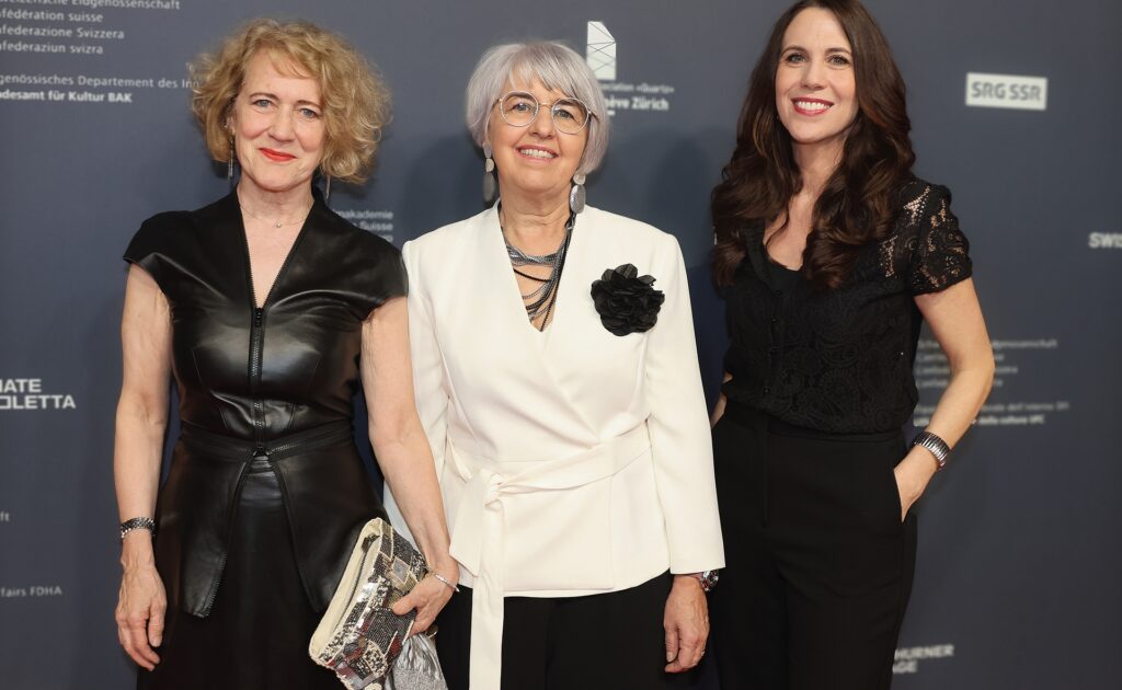 Begeisterter Empfang: neuer Verteidigungsminister Martin Pfister, Ehefrau Cacilda Giacometti Pfister, Bundeskanzler Viktor Rossi, abtretende Bundesrätin Viola Amherd.