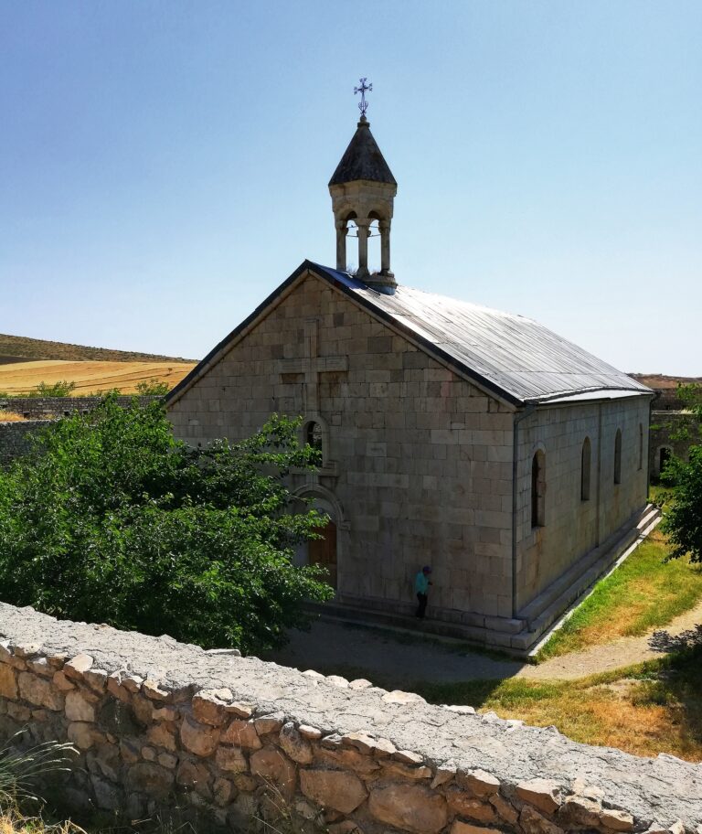 Bergkarabach Die gewundene Strasse, die den Hügel hinauf zum Kloster von Amaras führt, überschreitet mehrere unbewohnte Dörfer, die von ihren armenischen Einwohnern vor einem Jahr verlassen wurden. Die Häuser sind leer und unberührt, mit offenen Türen. Hohes Unkraut wächst in den Gärten, Pflanzen klettern die Wände hoch. Alles ist still und bewegungslos, nur streunende Hunde schleichen durch die Gassen. «Alle Karabach-Klöster werden Museen sein.» ...