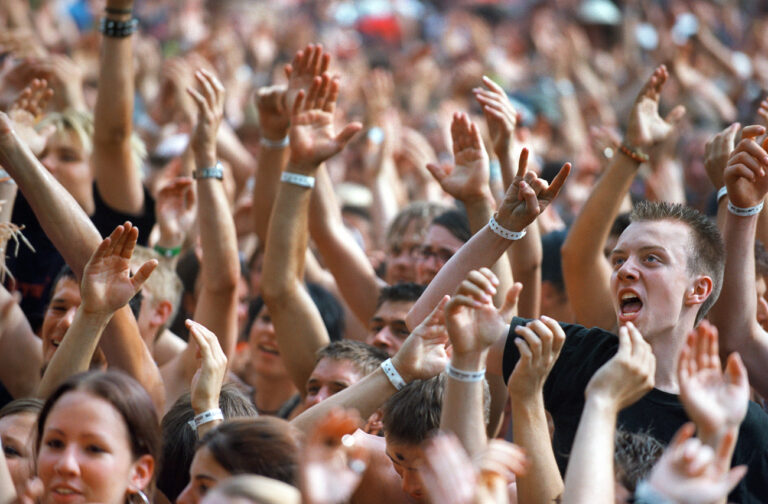 Das begeisterte Publikum klatscht und johlt an einem Konzert am 27