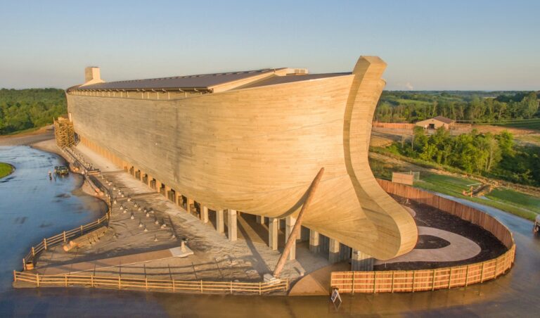 Christlich bescheiden kann man es nicht nennen, doch was will man machen? Noahs Arche war nun mal biblischen Ausmasses. Seit der Eröffnung 2016 strömen pro Jahr rund eine Million Menschen in den amerikanischen Bundesstaat Kentucky, um die 1:1-Replik der Arche Noah von aussen zu betrachten und ihr Inneres zu erkunden. «Ark Encounter», zu Deutsch: Arche-Begegnung, heisst das Museum, das 155 Meter lang, 26 Meter breit und sechzehn Meter hoch ist. Es steht auf einem Gelände in Williamstown und ist der Nabel eines biblischen Themenparks, der 150 Millionen Dollar gekostet haben soll.