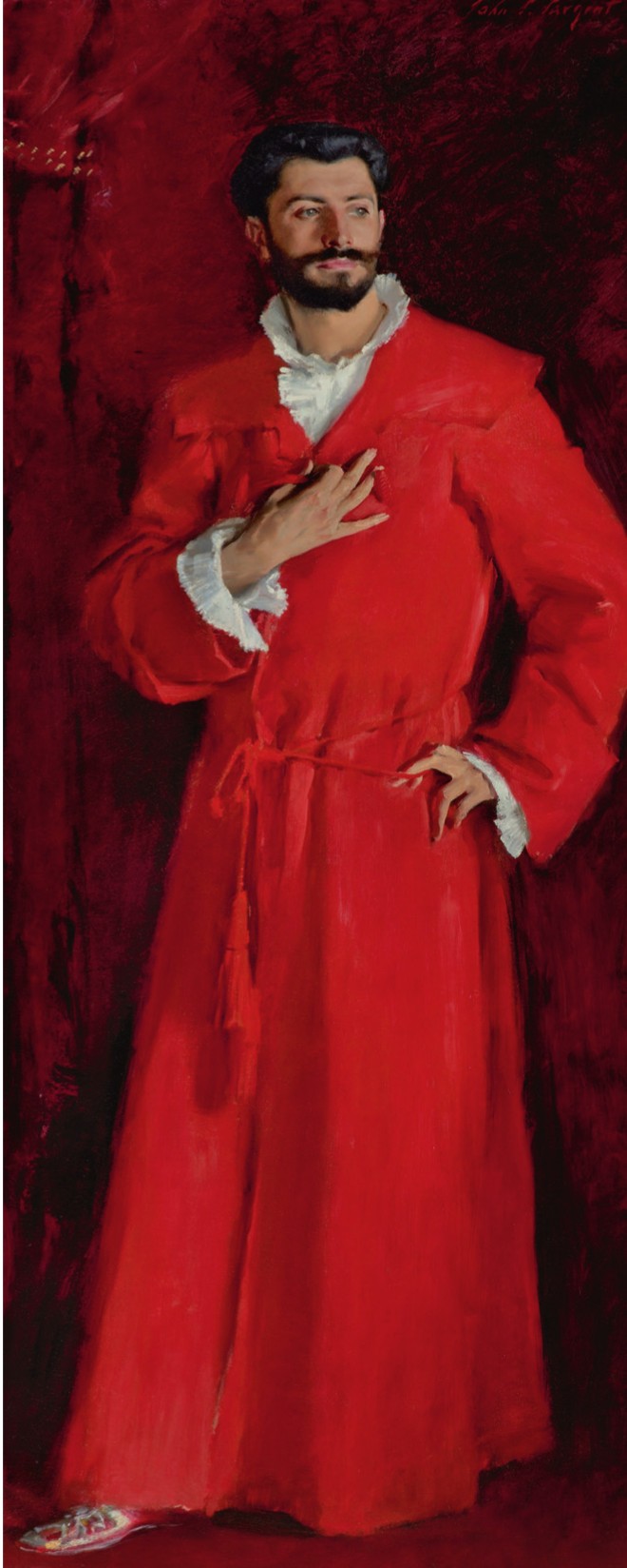 Auch so kann ein Buch entstehen: Im Jahr 2015 besucht der englische Romancier und Kunstliebhaber Julian Barnes eine Ausstellung von Porträts des amerikanischen Malers John Singer Sargent in der Londoner National Portrait Gallery. Besonders gut gefällt ihm ein Bild, das eine Orgie in Rot ist: «Dr Pozzi at Home» (1881). Im Begleittext dazu steht, der Mann, der da so selbstbewusst in einem bodenlangen Morgenrock posiere, sei Gynäkologe gewesen.