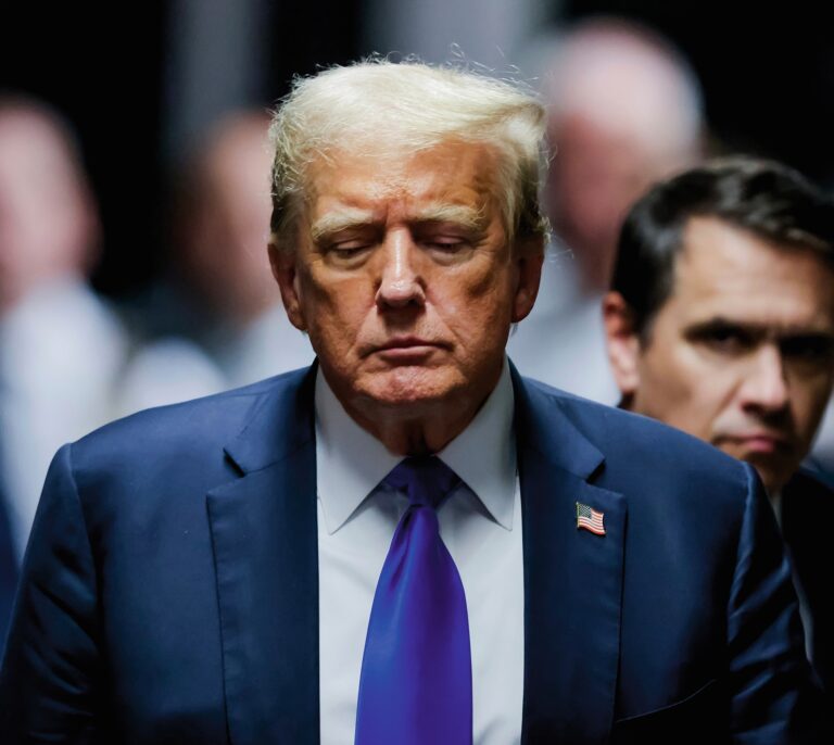 Former President Donald Trump leaves the courthouse after a jury found him guilty o ...
