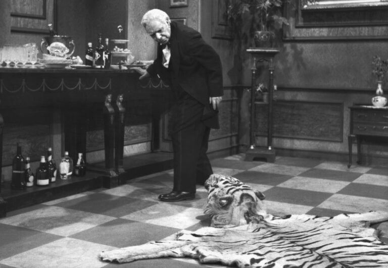 Die TV-Autoren von heute weinen sich die Augen aus. Immer zum Jahreswechsel wird ihre Kunst in den Schatten gestellt. Dann fiebert das Publikum einer Produktion entgegen, die entstand, als noch niemand von «Storytelling» sprach. «Dinner for One» ist seit über sechzig Jahren der televisionäre Fixpunkt unzähliger Haushalte an Silvester. Butler James, gespielt von Freddie Frinton, schaut missbilligend zu dem auf dem Boden liegenden Tigerfell, das eine staendige Stolperfalle auf dem Weg von und zur Anrichte ist ...