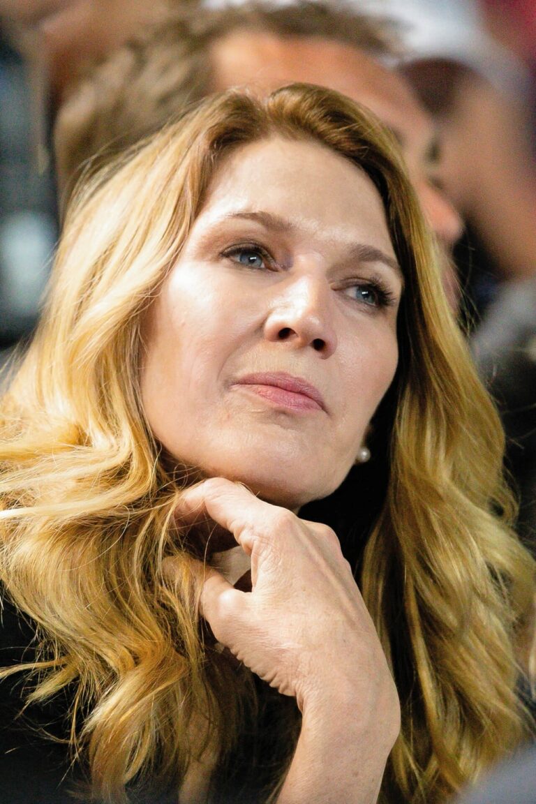 Sie lächelt scheu, fast ein wenig unsicher. Ihre Aufmachung ist von unprätentiöser Eleganz: hellblaue Bluse, dunkle Hosen, die blonden Haare trägt sie offen, an ihrem Hals hängt eine feine Kette aus Weissgold mit dezentem Anhänger. Stefanie Graf reicht die Hand und sagt mit sanfter Stimme: «Hallo.»