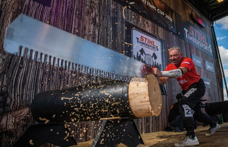 Der 250-ccm-Motor leistet 62 PS, die Spitzengeschwindigkeit liegt bei 240 km/h. Nein, die Rede ist nicht von einem getunten Motorrad, sondern von einer aufgemotzten Motorsäge. Hot saw, heisse Säge, nennen sie die Sportholzfäller. Mit der 25,5 (!) Kilogramm schweren Kettensäge bearbeiten die Timbersports-Athleten einen waagrecht verankerten Holzblock mit einem Durchmesser von 46 Zentimetern. In einem fünfzehn Zentimeter breiten, markierten Abschnitt müssen drei Scheiben (cookies) gesägt werden. Bevor das Startsignal ertönt, müssen die Holzfäller beide Hände auf den Holzblock legen. Darauf muss die beeindruckende Maschine mit dem Anwerfseil zum Laufen gebracht werden. Kein ein ...