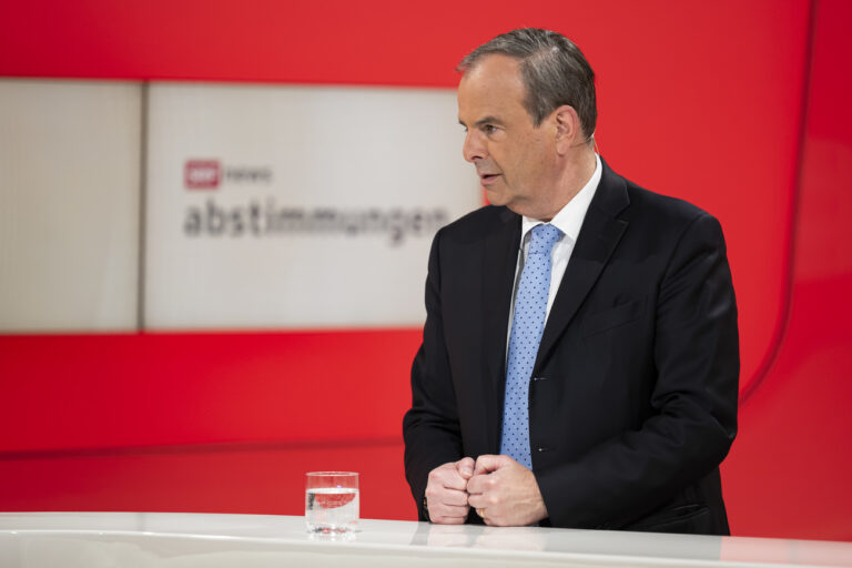 Gerhard Pfister, Parteipraesident Die Mitte, spricht im TV Studio de ...