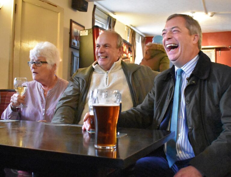 «Das Wichtigste ist, dass man es gerne tut»: Farage (r.) in einem Pub.