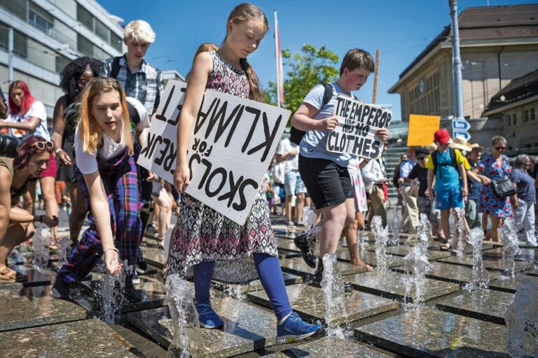 «What do we want?», brüllt ein etwa vierzehnjähriger Bub auf der Place de la Gare in Lausanne. Er hat rote Haare und Sommersprossen, seine Stimme ist hoch und grell und überschlägt sich beim Wiederholen der Frage. Die versammelten Klimademonstranten quittieren die Frage mit «climate justice» – Klimagerechtigkeit. Hin und her geht das Spiel, bis die Menge in Jubel ausbricht. Der Junge, rot angelaufen und sichtlich ausser Atem, strahlt vor Glück. Eine Dame, vielleicht Anfang sechzig, applaudiert und klopft ihm anerkennend auf die Schulter.