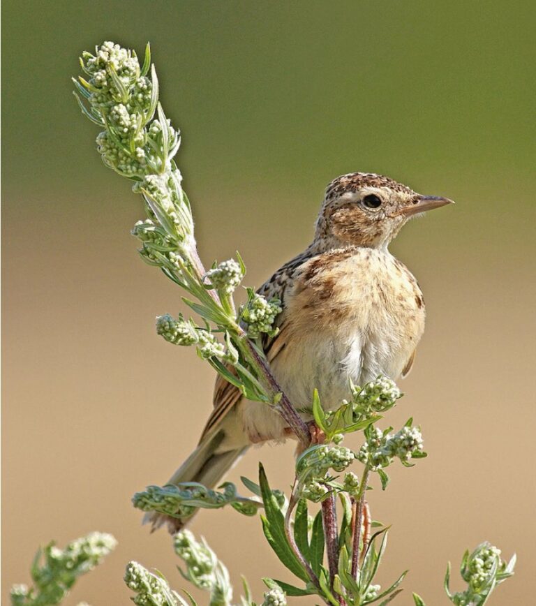 Schon ab Februar flöten und trällern wieder die Lerchen über Wiesen und Äckern. Sie sind nicht zu überhören, aber leicht zu übersehen. Man muss Übung haben, um irgendwo da oben die singenden Federbälle zu entdecken. Schon vor Sonnenaufgang legen sie los; und erst wenn es dunkel wird, halten sie den Schnabel.