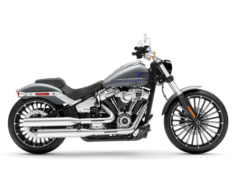 Neuerdings mit dem Milwaukee-Eight 117 als Herzstück, wurde die Harley-Davidson Breakout umfassend aktualisiert. Die 1923-Kubikzentimeter-Maschine bietet beachtliche 103 PS bei 5020 Umdrehungen und 168 Newtonmeter bei 3500 Umdrehungen. Ein Kraftpaket, das Freude macht. Zum ausgebauten Hubraum kommen ein grösserer Tank, mehr Elektronik und, für das Auge, viele Zierelemente aus Chrom: an den Radabdeckungen, an den Auspuffblenden, an den Blinkern und Rückspiegeln beispielsweise. Der Cruiser ist erhältlich ab Fr. 26 900.–