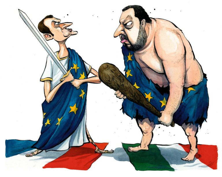Der erste Hinweis, dass Matteo Salvini sich als Kontrahent von Emmanuel Macron versteht, kam im Juni, wenige Tage nach seiner Ernennung zum italienischen Innenminister. Salvini, dessen Partei, die Lega, für eine drastische Einschränkung der Einwanderung eintritt, gab bekannt, dass ein in Deutschland registriertes Rettungsschiff mit 629 afrikanischen Migranten an Bord nicht in Sizilien anlegen dürfe.