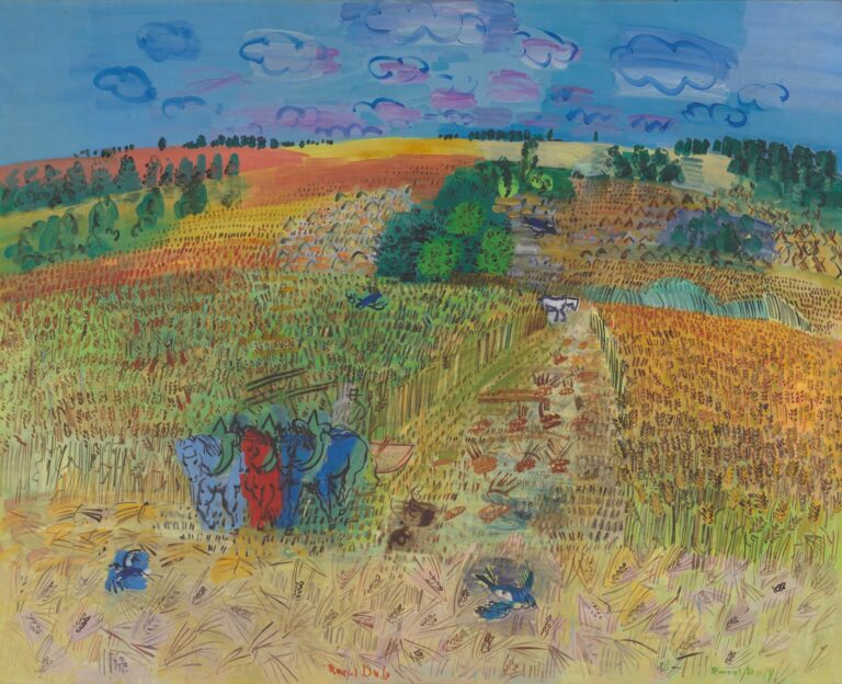 Raoul Dufy, Das Weizenfeld, 1929 – Die Felder sind abgeerntet, die Bäume, die Reben auch, der Mais eingefahren, und still in einem Hauch Leblosigkeit liegen die Felder vor sich hin, erschöpft vielleicht und ausgezehrt. Still auch sind die Tage des Erntedankes an uns vorbeigegangen. Es schien, als ob uns eine bewusste Dankbarkeit für das täglich Brot abhandengekommen wäre. Da war kein Fest der Erkenntlichkeit dafür, dass der Boden fruchtbar war, mit Fülle nicht geizte, für all die Anstrengung belohnte und uns weiter ein wohlgenährtes Dasein leben lässt.