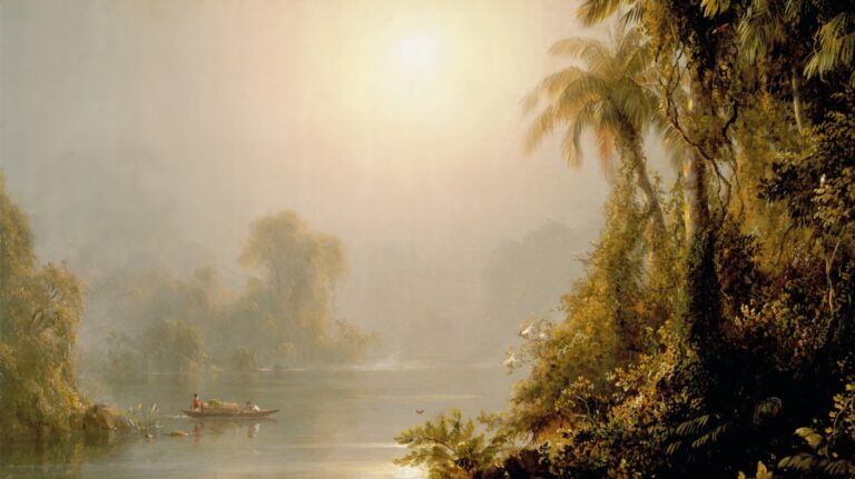Frederic Edwin Church, Morning in the Tropics, 1858 – Der Morgen ist des Menschen schwerste Zeit. Der Schlaf wehrt sich gegen das Erwachen, das Hirn gegen das Denken, der Körper gegen die Bewegung, die Sinne gegen die Reize. Da ist die Zeit, die drängt. Selten nur gelingt dem Menschen, was die Natur mühelos vollbringt: in eleganter Schönheit aufzuwachen.