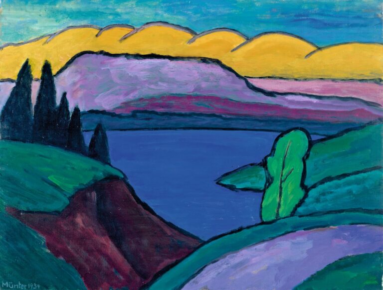 Gabriele Münter, Der blaue See, 1934 - Wahrscheinlich gibt es das Paradies gar nicht. Es könnte sein, dass es sich der Geist des Menschen nur ausgemalt hat als ewigen Trost, als besänftigenden Gegenentwurf. Die Schöpfung einer Paradiesvorstellung ist vielleicht die bemerkenswerteste Projektion, die er je geschaffen hat. Das Elysium ist der Notausgang des Seins, der uns rettet vor den mannigfaltigen Dämpfern und den Tritten des Lebens.