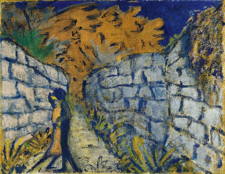 Otto Mueller, Liebespaar zwischen Gartenmauern, 1921 – Es gibt wohl nichts Schmerzhafteres und gleichzeitig Rettenderes auf dieser Welt als die Liebe. Sie ist noch unerklärlicher als das Universum, sie ist so dunkel wie der Raum zwischen Galaxien und so hell wie das Zentrum eines Sternenhaufens. Man kann nicht genau datieren, wann die Liebe in die Welt kam, aber sie kam ins Leben, damit Mann und Frau aneinander hängenbleiben, um ihrem Nachwuchs die bestmöglichen Überlebenschancen zu bieten.