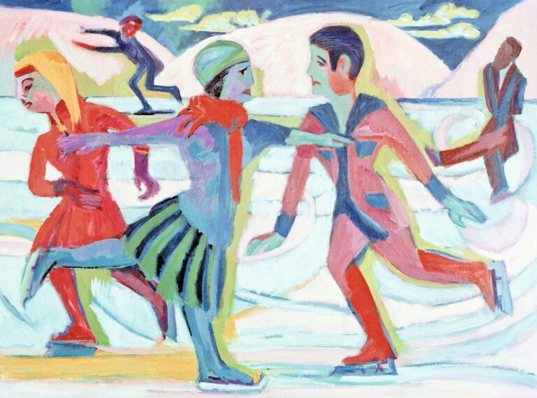 Ernst Ludwig Kirchner, Schlittschuhläufer, 1924/25 – Der Weg des Menschen durch seine Zeit ist einer auf dünnem Eis. Manchmal scheint es dick genug, damit er gleiten kann darauf, und er rauscht durch die Tage, Jahre und Jahrzehnte, dreht Pirouetten und spielt mit der Schwerkraft. Er überschätzt sich und fällt hin gelegentlich, schrammt sich an Körper und Seele und findet doch zu schnell wieder seinen Tritt. Und manchmal bricht das Eis ob seinen Kapriolen ein, und er strampelt in kalter Hilflosigkeit. Drei Millionen Jahre geht das schon so. Das ist sein grösster Triumph; dass er Pest und Cholera und seinen eigenen Enthusiasmus immer wieder überleb ...