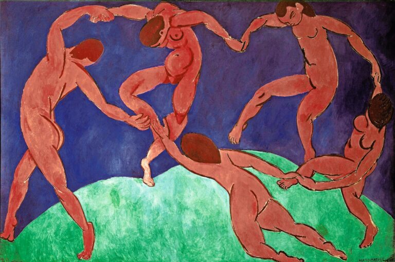 Henri Matisse, Der Tanz, 1909 – Es ist, als ob wir stillstünden, als ob die Zeit sich nur noch im Kreis drehte, festgezurrt in einer mühseligen Gegenwart. Mit unseren Händen halten wir uns nicht mehr, die Erinnerung an das selbstverständliche Glück vergangener Tage rinnt uns durch die Finger und lässt uns dumpf trauern in den tiefen Sümpfen des Lebensfrusts.