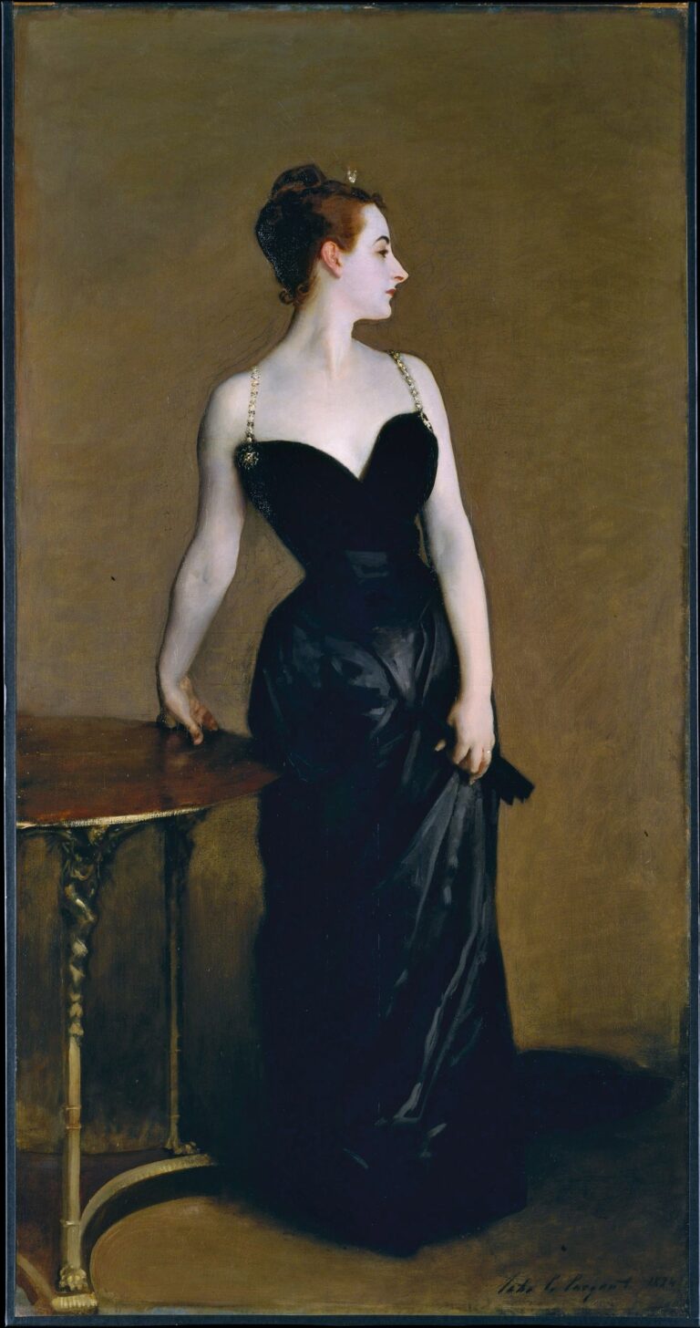 John Singer Sargent, Madame X, 1884 – Die Dame hiess Virginie Amélie Avegno Gautreau, stammte ursprünglich aus Virginia, galt als eine der schönsten Frauen ihrer Zeit, als eine, deren Magie es vermochte, mit einem Wimpernschlag die Welt ihres Gegenübers in ein unerwartetes Leben zu schleudern. Unsterblich wurde sie als Madame X, gemalt vom bekanntesten Porträtmaler seiner Zeit, John Singer Sargent (1856–1925), der in Europa als Sohn amerikanischer Eltern zur Welt kam.