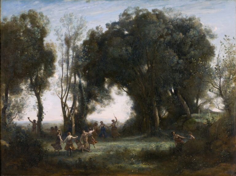 Camille Corot, Tanz der Nymphen, 1850 – Wir bekommen gerade, mit erträglichem Schmerz noch, eine Ahnung, wie ein Leben in einer Zeit mit immer weniger Erbaulichem sich anfühlen könnte; wenn die Last der Welt ihre Leichtigkeit erdrückt, wenn der Blick hinter die Zeit sich nicht mehr im Zuversichtlichen, sondern im Ängstlichen verliert, wenn das Schöne und das Kraftvolle die Fähigkeit einbüssen, einen zu verzaubern.