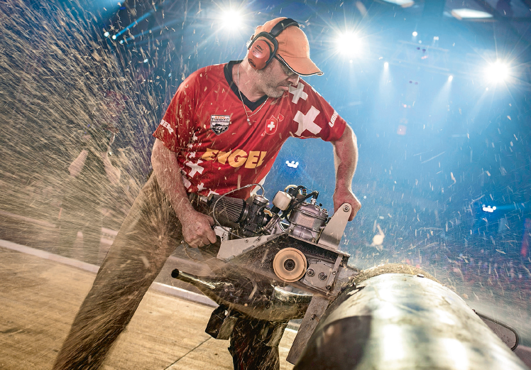 Er ist kein Hüne, wirkt aber kräftig. Etwa 130 Kilo stemme er auf der Schrägbank, schätzt Ben Cumberland, 25. Er setzt sich an den Tisch im Pressebereich und erzählt von den dreihundert Baumstämmen, die er in der Vorbereitung seit August gehackt habe. Der studierte Forsttechnologe trägt einen Vollbart, seine schwarze Daunenjacke ziert der Schriftzug «Canada». Neben Bäumefällen und Krafttraining analysiere er aber auch Videos seiner Gegner und arbeite im mentalen Bereich. Alles in allem seien es zwei Stunden täglich, wie er vorrechnet.