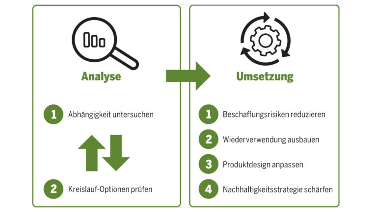 Basierend auf der Analyse müssen dann, drittens, konkrete Schritte definiert werden, um Abhängigkeiten zu reduzieren und die Kreislauffähigkeit zu erhöhen.