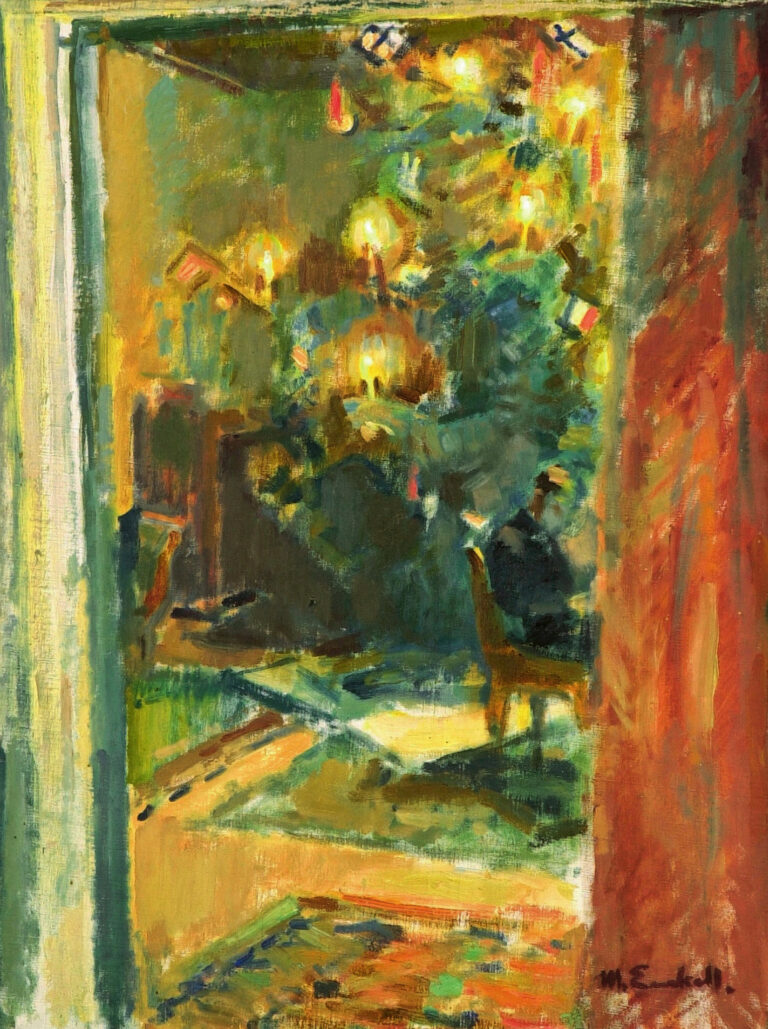 Magnus Enckell, Christmas Tree in the Hall of Kilo Mansion, 1919 – Er war einer der unglücklichsten Maler seiner Zeit, innerlich zerrissen, hin und her gespült zwischen den beiden Geschlechtern in ihm und seiner Unfähigkeit, sich auf eines festzulegen. Stets hatte Magnus Enckell (1870 –1925) das Gefühl, das jeweils andere Geschlecht in ihm zu enttäuschen. Er fand keinen Ort im Strudel seiner Existenz, in dem er sich hätte zu Hause fühlen können, und vielleicht kam es deshalb, dass er einer der ganz wenigen Künstler war, die einen Weihnachtsbaum malten.