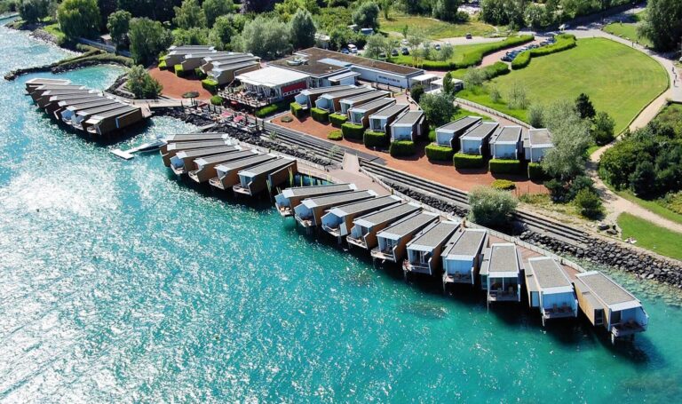 Das «Palafitte», Europas einziges Fünfsternehaus auf Stelzen, war eine weniger wacklige Angelegenheit als die Expo 02, zu deren Zweck es gebaut wurde. Um die Expo musste man lange bangen, sie wurde verschoben, das Hotel aber steht auch heute noch, 21 Jahre später. Das ist erstaunlich, denn das «Palafitte» hätte nach dem Ende der Landesausstellung, im Oktober 2002, geschlossen werden sollen. Geplant war eine Umsiedlung an einen anderen Ort. Doch die experimentelle, exquisite Pfahlbauanlage erwies sich als standhaft. Das Hotel verlängerte seine Betriebsbewilligung am und im Neuenburgersee bis heute immer wieder.