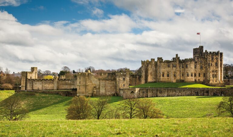Das Anwesen, zum ersten Mal im Jahr 1136 erwähnt, befindet sich in der englischen Grafschaft Northumberland, ist der Sitz des 12. Herzogs von Northumberland und befindet sich rund fünfzig Kilometer von der schottischen Grenze entfernt. Es ist nach Windsor Castle das zweitgrösste bewohnte Schloss Englands. Allerdings lebt Herzog Ralph Percy mit seiner Familie bloss in einem Teilbereich der Burg, so dass der Rest der Anlage jeweils den ganzen Sommer üb ...