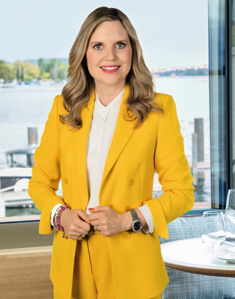 Als sie die blumengeschmückte Terrasse der «Rôtisserie» im Hotel «Storchen» betritt, schauen die Leute von ihren Tellern auf: Manuela Beer gibt, wie man es von der Chefin eines Modehauses erwarten darf, eine tadellos elegante Erscheinung ab. Beim Treffen mit der Weltwoche trägt die PKZ-Geschäftsführerin ein farbenfrohes, grünstrahlendes Kleid des italienischen Labels Robert Friedman, darüber einen ungefütterten, zartrosa Blazer von Circolo.
