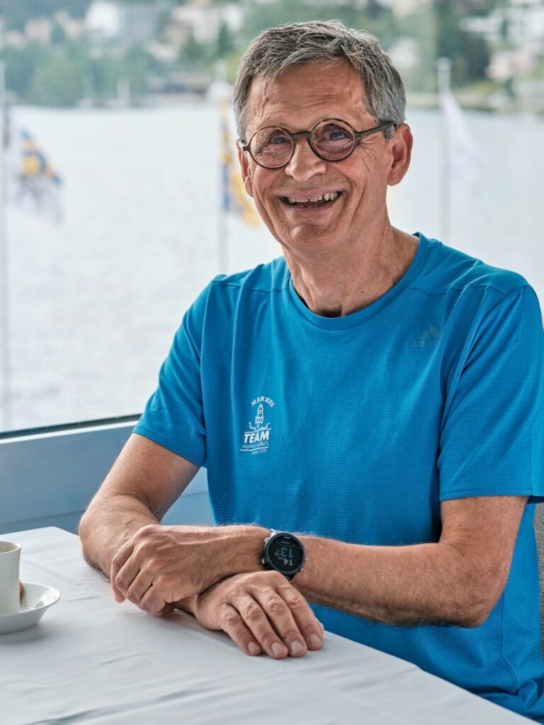 Die Tafel im Speisesaal ist weissgedeckt. Markus Ryffel hat sich sein Menü heute selber am Mittagsbuffet zusammengestellt. Er lässt den Blick über den St. Moritzersee in die Bündner Berge schweifen. «Ein Dreisternehaus mit Fünfsternepanorama», schwärmt er. Sein Tenü – schwarze Trainerhose und blaues Jogging-Shirt – will nicht so recht zum distinguierten Ambiente des Hotels «Waldhaus am See» passen. Es verrät, dass der 65-Jährige diese Woche noch Schweisstreibenderes vorhat als dieses Interview. So unter anderem einen 19 Kilometer langen Berglauf auf die Alp Grüm auf 2103 m ü. M.