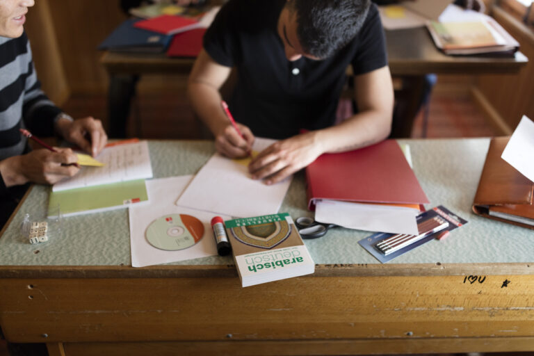 Im April 2023 berichtete die Weltwoche über einen kuriosen Fall aus dem Kanton Schwyz. Nun ist aus dem kuriosen Fall offizielle Staatsdoktrin geworden. Doch der Reihe nach. Damals wollte ein privater Trägerverein eine Schule eröffnen. Gemäss dem kantonalen Volksschulgesetz braucht es dazu eine Bewilligung. Die Bewilligungsvoraussetzungen werden vom Erziehungsrat festgelegt. Dazu hat er entsprechende Weisungen erlassen. Asylum seekers write into their excercise books during German lessons in a converted classroom, photographed in a temporary housing ...