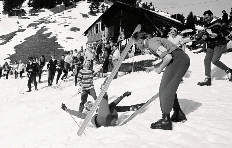 Understatement ist ihr Ding: Mürren, 1961 (l.), Diana Rigg und George Lazenby bei den Dreharbeiten von «On Her Majesty’s Secret Service» auf dem Schilthorn, 1968.