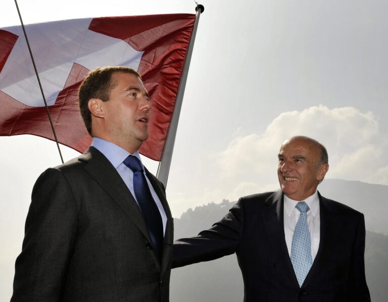 «Es ist mir eine Ehre»: Hans-Rudolf Merz, Dmitri Medwedew (l.), September 2009.
