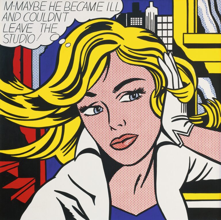 Seine Werke sind Ikonen der Pop-Art und der Kunst der Moderne. Grossformatige Siebdrucke im Stil eines Comics mit schwarzkonturierten Farbflächen und Punktrastern. Berühmt etwa sein Werk «M-Maybe – A Girl’s Picture» von 1965, das für das Museum Ludwig in Köln ungefähr die Bedeutung hat wie die «Mona Lisa» für den Louvre. Die Rede ist natürlich von Roy Lichtenstein.