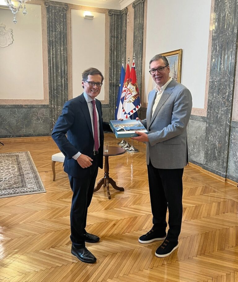 Eben noch weihte er in einem brandneuen Belgrader Hangar einen chinesischen Hochgeschwindigkeitszug ein. Kurz darauf empfing Serbiens Präsident Aleksandar Vucic in der alten Königsresidenz Weltwoche-Chef Roger Köppel und Redaktionsmitarbeiter Mihajlo Mrakic, der in Zürich gerade sein ETH-Studium abschliesst. Rund eine Stunde dauerte das Interview, in dem Vucic, nachdenklich, philosophisch, einen sehr düsteren Blick auf die Lage in der Ukraine wirft. Der 54-jährige Staatschef, seit zehn Jahren tonangebend in der Politik seines Landes, bereitet Serbien auf einen grossen Krieg vor. Er sei «ziemlich sicher», dass «wir bald eine Katastrophe erleben werden». Die «Kriegstreiberei» des Westens hält der studierte Jurist für verantwortungslos. Einziger Lichtblick an diesem Vormittag blieb die grosse Packung Zürcher Sprüngli-Pralinés, die Vucic von seinen Besuchern dankend entgegennahm. zur Story