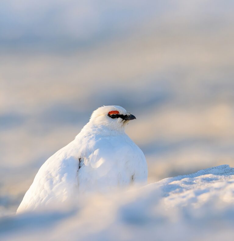 Ein Meister der Anpassung ist das Schneehuhn. Sein Daunenkleid lässt es Minustemperaturen von 40 Grad unbeschadet überstehen. Auch Nasenlöcher und Beine sind mit Federn geschützt. Und zur Winterausrüstung gehören Schneeschuhe: An den Zehen wachsen im Herbst abstehende Hornplättchen, die den zierlichen Fuss gegen das Einsinken wappnen.