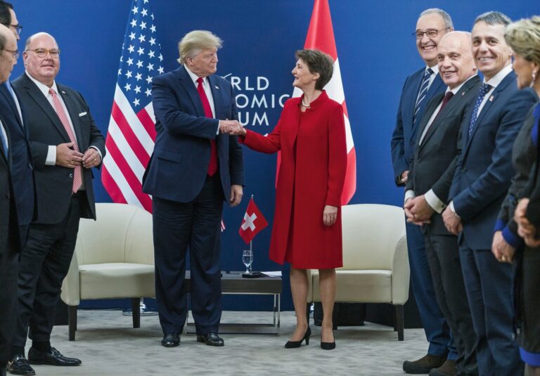 Donald Trump hat einen mehr als rührigen Botschafter in der Schweiz. Und viele Freunde seiner Politik. Und daneben dreissig Geheimdienste, die uns alle abhören. Trump bringt seine bizarren Botschaften leicht verständlich rüber. In Davos versuchte Simonetta Sommaruga, gegen Trump zu punkten. Ihr Thema: Die Welt brennt. Es ist fünf nach zwölf. Wir müssen handeln. Ihr rotes Kleid als Symbol ihrer Message. Trump war grottenschlecht vorbereitet. Wäre der amerikanische Präsident nur halbwegs gut gebrieft gewesen, hätte er folgende Fragen gestellt: