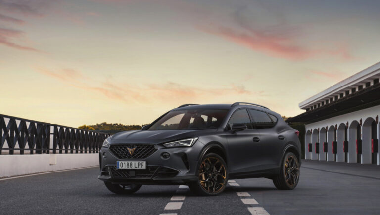 Schon auf den ersten Blick ist der neue Cupra Formentor VZ5 ein nicht zu übersehender Hinweis auf seine Möglichkeiten und seinen Charakter: Dunkelgraue Mattlackierung, Karbon-Schalensitze, Zwanzig-Zoll-Räder und das bronzefarbene, zackige Logo im Kühlergrill, das an indianische Stammeszeichen erinnern soll und für Leidenschaft, Präzision, Entschlossenheit und Mut steht, sind typische Sportwageninsignien. Das mag eine etwas gar aufgeladene Symbolik sein, aber das Crossover-SUV aus Spanien strahlt genau deswegen den markanten Vorwärtsdrang aus, den die Designer, Markenstrategen und Ingenieure wohl beabsichtigt haben.