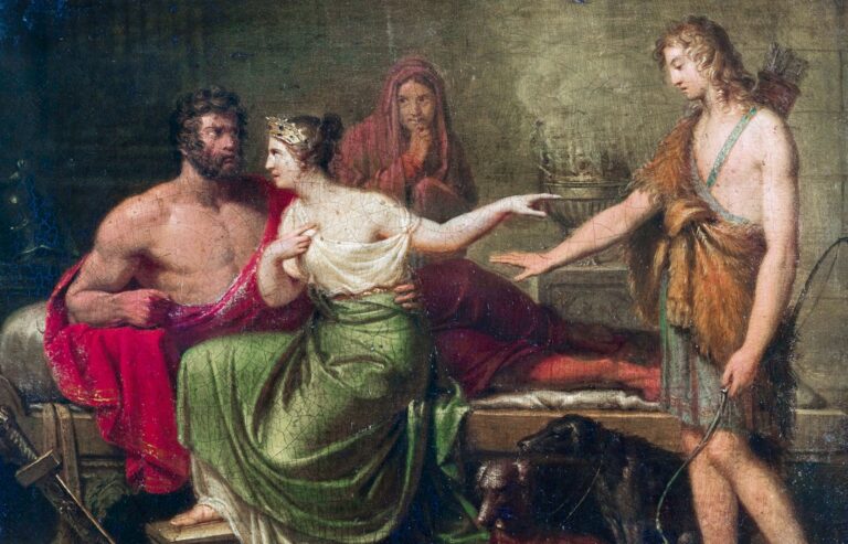 Aphrodite, die Liebesgöttin, ist furchtbar böse auf Hippolytos, weil dieser ihre Liebe nicht erwidert. Der keusche Jüngling, Sohn der Amazone Hippolyte und des Königs und Staatsmanns Theseus, verehrt Artemis, die Göttin der Jagd. Phaidra, die zweite Frau des Theseus, Tochter der Pasiphaë und Schwester der Ariadne, ist von einer leidenschaftlichen Liebe zu ihrem Stiefsohn Hippolytos besessen. Diese wurde ihr von Aphrodite aus Rache eingeträufelt. Als der ahnungslose Hippolytos vom Liebesbegehren Phaidras erfährt, weist er dieses Ansinnen entsetzt zurück, worauf Phaidra nur den Tod als Ausweg sieht. Der heimkehrende Theseus entdeckt an der Hand sein ...